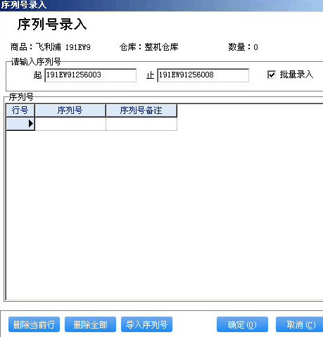 3、序列号库存状况表:用于统一查询某仓库某商品的库存序列号情况。