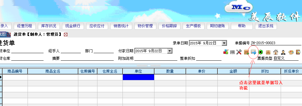 点击进货单或者销售单,然后点击右上角的导入图标,如下图