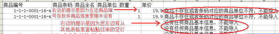 商品编号或者商品条码也必须是软件的商品信息里面已经有的才可以导入,没有的需先在基本信息里面添加进去.