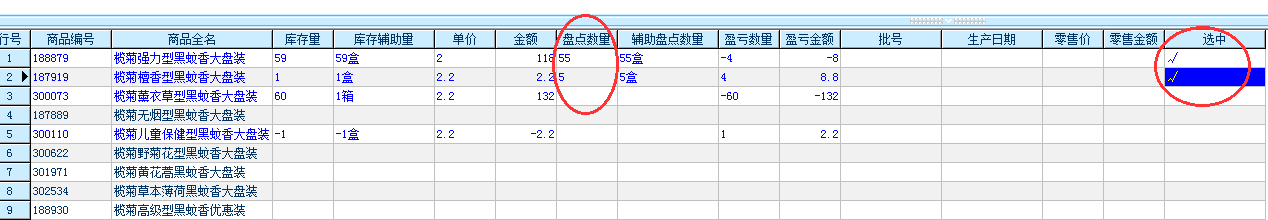 当您已经录入过的盘点商品再次录入,软件会自动跳转到之前录入的行。