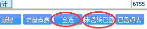 2、您也可以在未盘点表全部补录盘点核对完毕之后,点击下面的全选