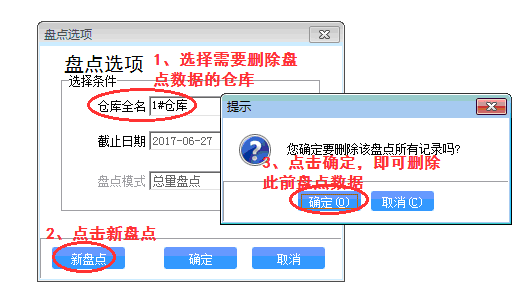 当您需要重新盘点,或者不想保留之前某个仓库的盘点数据时,可以选择删除盘点数据。