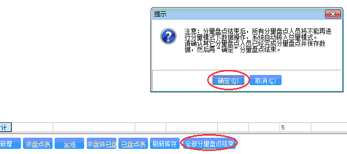 分量盘点结束之后,点击盘点表下方的全部分量盘点结束,即可转入总量盘点模式。