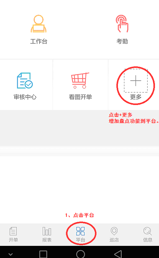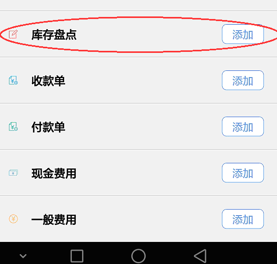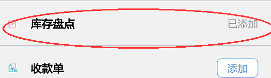 手指上下滑动选择库存盘点功能添加到操作平台。