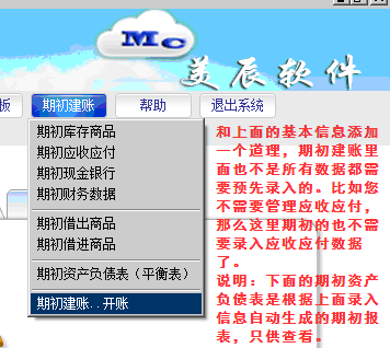 二、然后在期初里面录入期初库存数量价格、期初往来金额等;